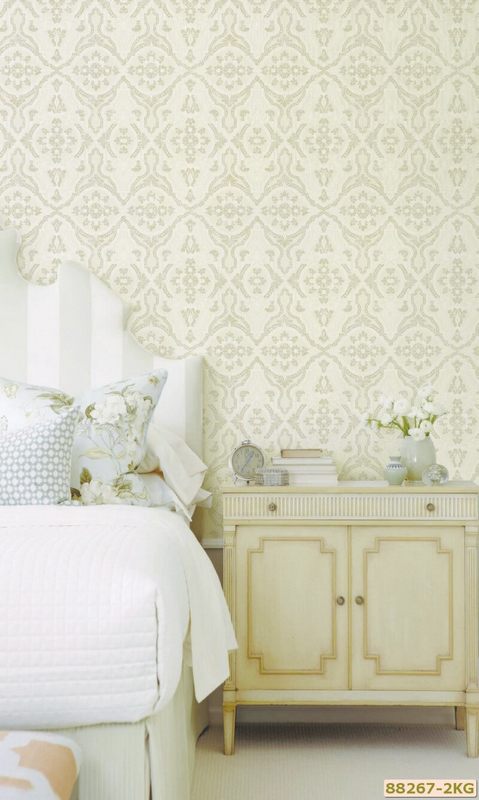 Giấy dán tường 88264-2 có màu sắc vàng kem nhẹ nhàng và họa tiết tinh tế.